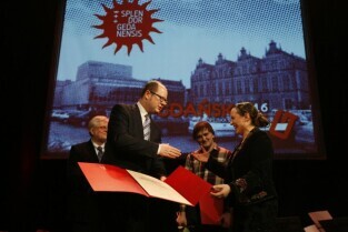 Gala Nagrody Miasta Gdańska w Dziedzinie Kultury "Splendor Gedanensis". Gdańsk, Teatr Wybrzeże. Nagroda Mecenasa Kultury dla Polkomtel S.A., którą odbiera w-ce prezes Krzysztof Kilian