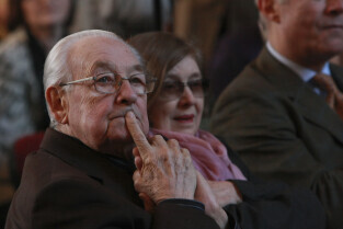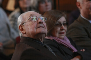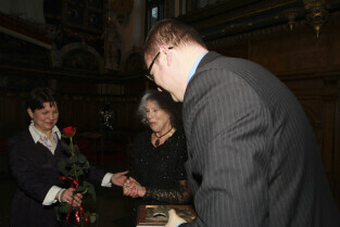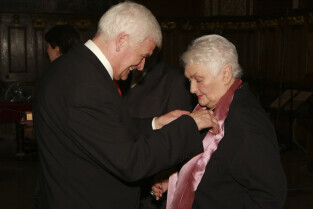 Gdańsk, Dwór Artusa. Nagrody Teatralne Woj. Pomorskiego i Miasta Gdańska. Nz. Andrzej Wajda i Krystyna Zachwatowicz