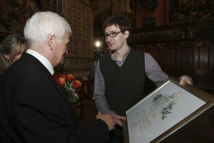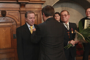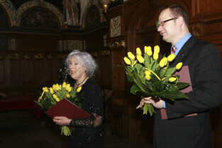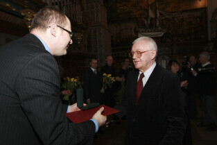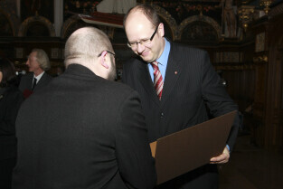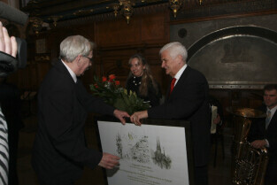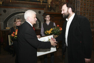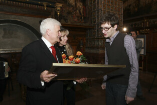 Gdańsk, Dwór Artusa. Nagrody Teatralne Woj. Pomorskiego i Miasta Gdańska. Nz. nagrody wręcza Jan Kozłowski (Marszałek Woj. Pomorskiego)