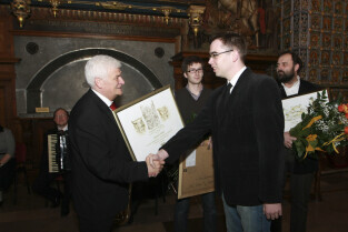 Gdańsk, Dwór Artusa. Nagrody Teatralne Woj. Pomorskiego i Miasta Gdańska. Nz. nagrody wręcza Michał Owczarczak (Wicewojewoda Pomorski)