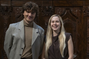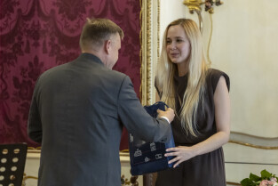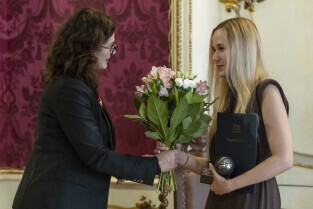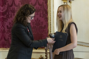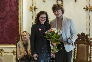 Gdańsk. Nagrody Uphagena dla młodych naukowców z rąk prezydent Gdańska Aleksandry Dulkiewicz otrzymali: dr. Sylwia Klińska-Bąchor i mgr. Jurand Sobiecki.