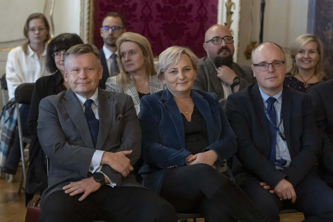 Gdańsk. Nagrody Uphagena dla młodych naukowców z rąk prezydent Gdańska Aleksandry Dulkiewicz otrzymali: dr. Sylwia Klińska-Bąchor i mgr. Jurand Sobiecki.
