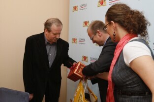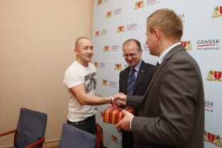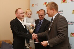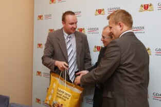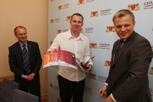 Nagrody dla osób, które udzieliły najciekawszą odpowiedź na pytanie "Dlaczego z przyjemnością odwiedziliby wybrany lokal ponownie?" w ramach akcji "Rozsmakuj się w Gdańsku - Weekend za pół ceny". Nagrody wręczyli Z-ca Prezydenta Gdańska Maciej Lisicki i przedstawiciel sponsora nagród Dyrektor Hali Makro w Przejazdowie Andrzej Rogowski