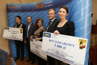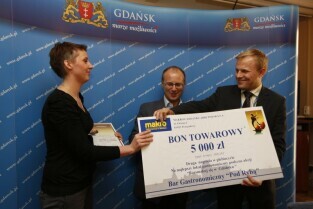 Nagrody dla osób, które udzieliły najciekawszą odpowiedź na pytanie "Dlaczego z przyjemnością odwiedziliby wybrany lokal ponownie?". Nagrody wręczyli Z-ca Prezydenta Gdańska Maciej Lisicki i przedstawiciel sponsora nagród Dyrektor Hali Makro w Przejazdowie Andrzej Rogowski