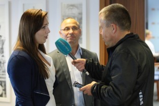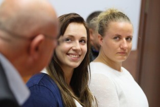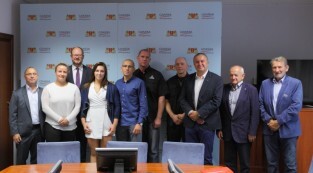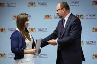 Urząd Miejski w Gdańsku. Spotkanie Prezydenta Gdańska Pawła Adamowicza z Tomaszem Jabłońskim, wicemistrzem Europy w boksie oraz Darią Pogorzelec i Katarzyną Furmanek , wicemistrzyniami świata w judo w turnieju drużynowym.