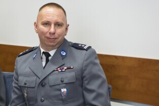 Urząd Miejski w Gdańsku. Prezydent Gdańska Paweł Adamowicz wręcza nagrody dla gdańskich policjantów za walkę z nielegalnym graffiti. Nz. p.o. Komendanta Miejskiego Policji w Gdańsku mł. insp. Wojciech Siwek