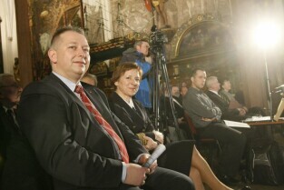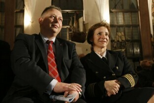 Gdańsk, Dwór Artusa. Uroczystość wręczenia nagród żeglarskich: "Rejs Roku" i "Srebny Sekstant". Nz. W-ce Minister Infrastruktury RP Anna Wypych-Namiotko i z-ca Prezydenta Gdańska Andrzej Bojanowski