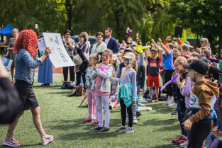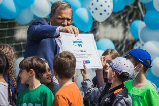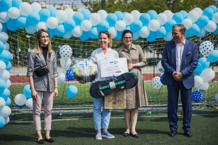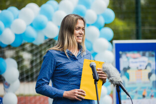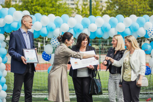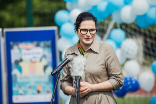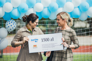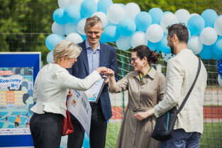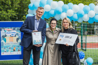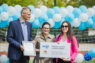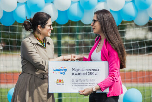 Gdańsk, ul. Startowa. Nagrody dla zwycięzców Rowerowego maja. Nagrody wręczyła Prezydent Gdańska Aleksandra Dulkiewicz