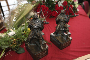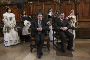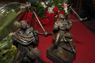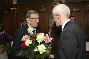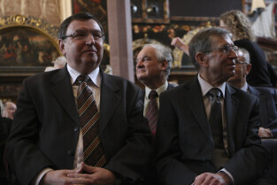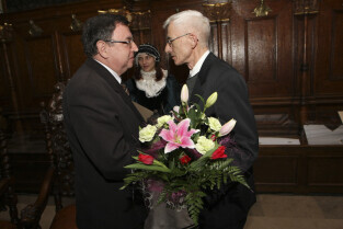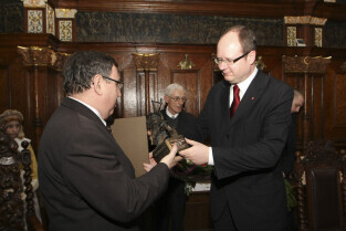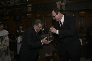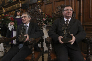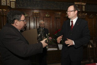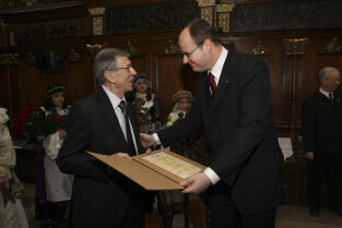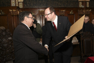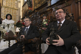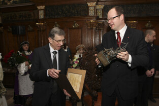Nagrody Naukowe im. Jana Heweliusza za rok 2008. Nz. prof. dr hab. inż. Ryszard Horodecki - laureat w kategorii nauk ścisłych i przyrodniczych "za wkład w tworzenie podstaw informatyki kwantowej" i prof. zw. dr hab. Marek Latoszek - laureat w kategorii nauk humanistycznych "za całokształt badań dotyczących ruchu społecznego "Solidarność" oraz problematyki regionalizmu i etniczności"