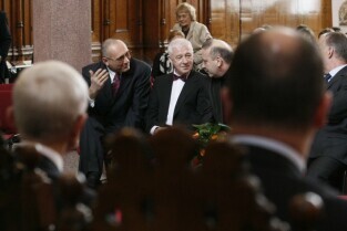 Gdańsk, Dwór Artusa. Nagrody naukowe miasta Gdańska im. Jana Heweliusza. Nz. Prof. dr hab. Zdzisław Brodecki, laureat nagrody w kategorii nauk humanistycznych za stworzenie teorii zintegrowanego porządku prawnego
