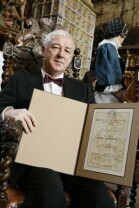 Gdańsk, Dwór Artusa. Nagrody naukowe miasta Gdańska im. Jana Heweliusza. Nz. nagrodę z rąk Prezydenta Gdańska Pawła Adamowicza odbiera Prof. dr hab. Zdzisław Brodecki