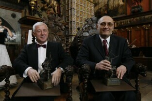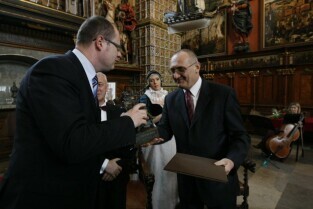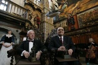 Gdańsk, Dwór Artusa. Nagrody naukowe miasta Gdańska im. Jana Heweliusza. Nz. Prof. dr hab. Jacek Jassem (po lewej) i Prof. dr hab. Zdzisław Brodecki