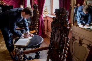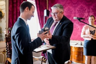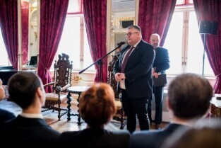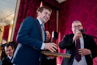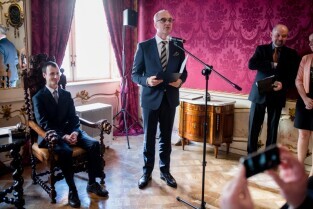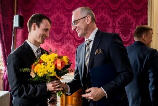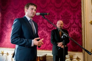 Uroczystość wręczenia Nagrody Miasta Gdańska dla Młodych Naukowców im. Jana Uphagena za rok 2016. Gdańsk, Dom Uphagena. Nz laureat Wacław Kulczykowski nagrodzony w kategoria nauk humanistycznych i społecznych