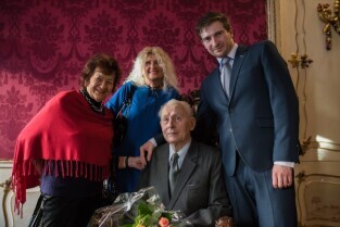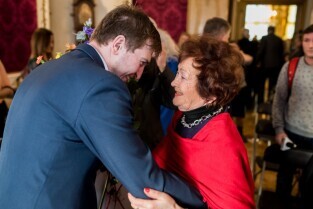 Uroczystość wręczenia Nagrody Miasta Gdańska dla Młodych Naukowców im. Jana Uphagena za rok 2016. Gdańsk, Dom Uphagena. Nz laureat Adrian Bekasiewicz z rodziną