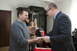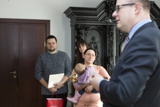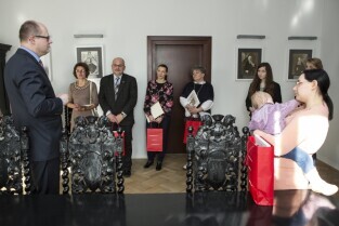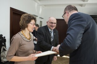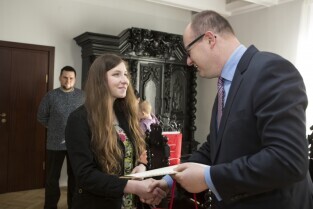 Urząd Miejski w Gdańsku. Prezydent Gdańska Paweł Adamowicz wręcza nagrody w konkursach fotograficznych: "(Długo)trwale Zakochani" i "Zakochani w Gdańsku"