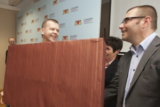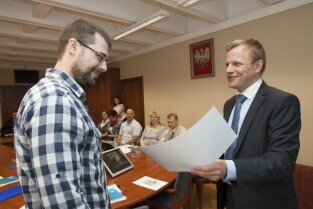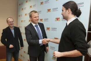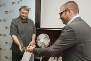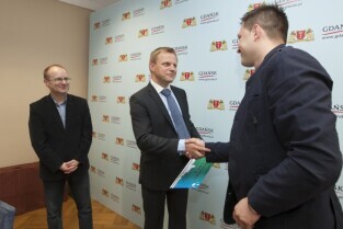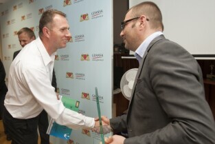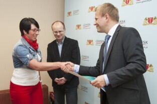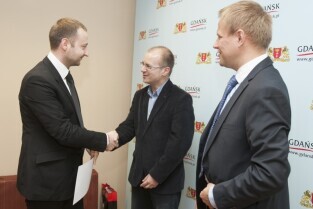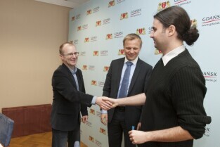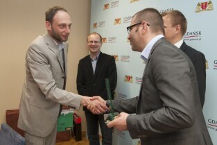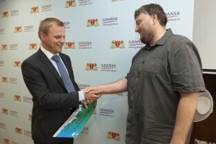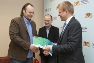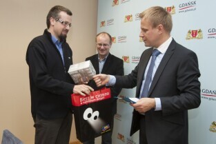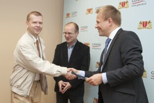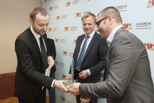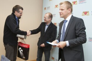 Urząd Miejski w Gdańsku. Wręczenie nagród klientom i restauratorom w konkursie zorganizowanym przy okazji kwietniowej akcji „Rozsmakuj się w Gdańsku – weekend za pół ceny”. Nagrody wręczyli Z-ca Prezydenta Gdańska Maciej Lisicki i przedstawiciel sponsora nagród Dyrektor Hali Makro w Przejazdowie Andrzej Rogowski