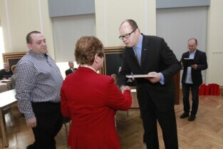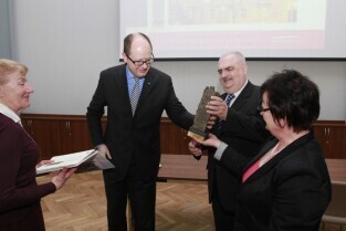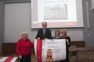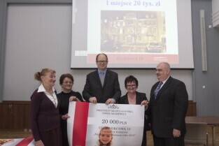 Urząd Miejski w Gdańsku. Prezydent Gdańska Paweł Adamowicz wręczył dziś nagrody w konkursie "Najładniejsza elewacja roku 2013" oraz statuetkę dla zwycięzców plebiscytu "Najładniejsza z najładniejszych elewacji z lat 2009 - 2013".