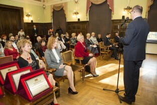 Gdańsk, Nowy Ratusz. Prezydent Gdańska Paweł Adamowicz wręcza nagrody za służbę na rzecz pacjentów