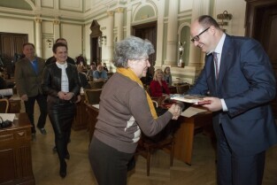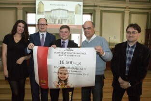 Rozstrzygnięcie konkursu "Najładniejsza elewacja 2014", w którym udział biorą wspólnoty mieszkaniowe. Nagroda dla wspólnoty: Wieniawskiego 14b. Gdańsk, Nowy Ratusz