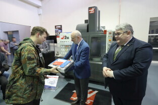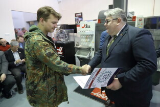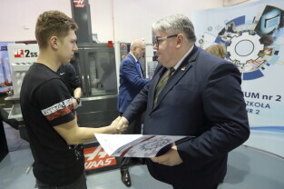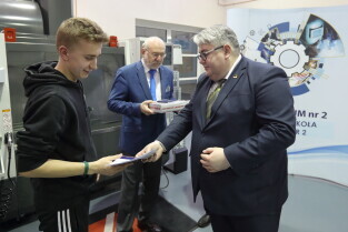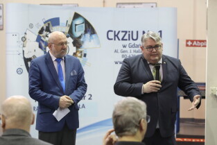 Gdańsk, Centrum Kształcenia Praktycznego nr 1. Podsumowanie konkursu "Najlepszy w zawodzie 2018" i wręczenie nagród. Nz, Dyrektor Dariusz Różycki i Wiceprezydent Gdańska Piotr Kowalczuk.
