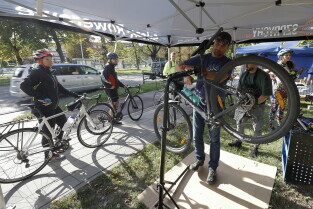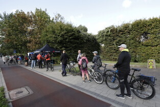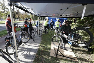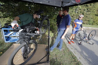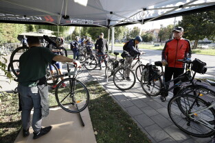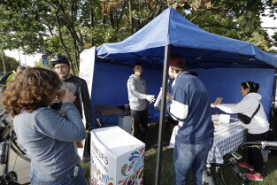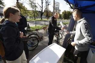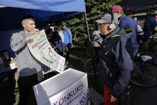 Gdańsk. Namiot promujący grę Kręć Kilometry dla Gdańska.
