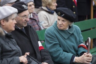 Gdańsk Strzyża. Uroczystość pod pomnikiem marszałka Józefa Piłsudskiego w przededniu Narodowego Święta Niepodległości. Nz. od lewej: Radni Miasta Gdańska Mirosław Zdanowicz i Beata Wierzba, Prezydent Gdańska Paweł Adamowicz, Radna Miasta Gdańska Aleksandra Dulkiewicz
