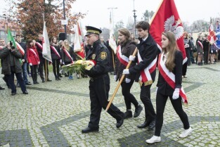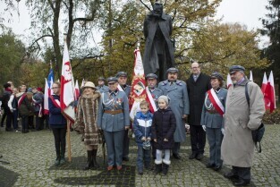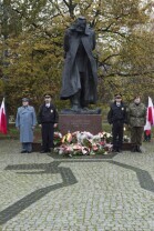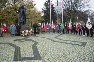 Gdańsk Strzyża. Uroczystość pod pomnikiem marszałka Józefa Piłsudskiego w przededniu Narodowego Święta Niepodległości
