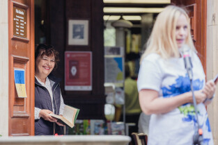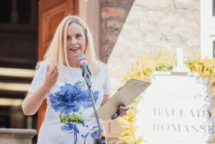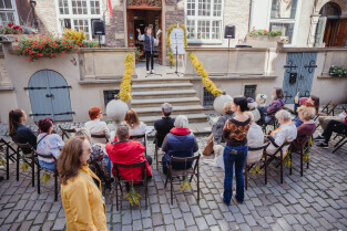 Gdańsk, ul. Mariacka. Narodowe czytanie 2022. A. Mickiewicz “Ballady i Romanse”. Nz. Zofia Gołub-Kowalska