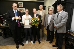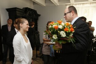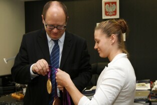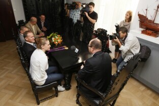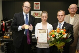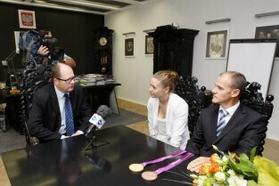 Urząd Miejski w Gdańsku. Prezydent Gdańska Paweł Adamowicz złożył gratulacje tenisistce stołowej Natalii Partyce, która na Igrzyskach Paraolimpijskich w Londynie (2012 r.) zdobyła złoty medal w klasyfikacji indywidualnej oraz brązowy drużynowo. W spotkaniu towarzyszył ojciec sportsmenki Andrzej Partyka