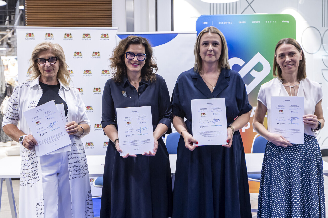 Gdańsk. Prezydent Aleksandra Dulkiewicz wraz z Przewodniczącą Rady Miasta Agnieszką Owczarczak wzięły udział w uroczystym otwarciu klubu młodzieżowego Niebieskie Trampki w Galerii Przymorze.