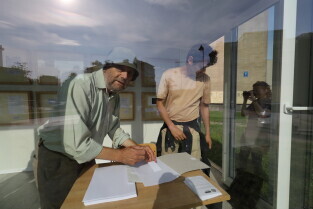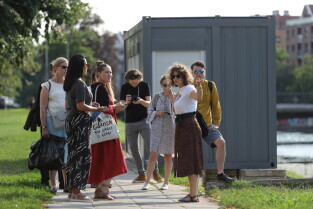 Gdańsk. Niefestiwal Miasto i Sztuka. Moja Wolność. Nz. Oprowadzanie kuratorskie-Kinga Jarocka.