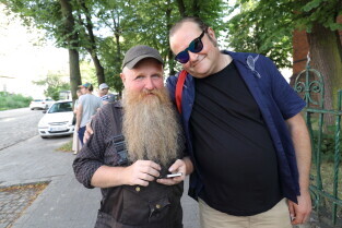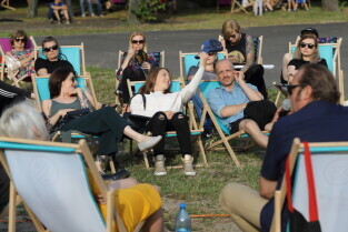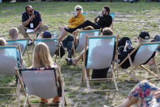 Gdańsk. Niefestiwal Miasto i Sztuka. Moja Wolność. Nz. Paweł Paulus Mazur zadaje 100 pytań Bolesławowi Chromremu i Magdalenie Sawickiej.