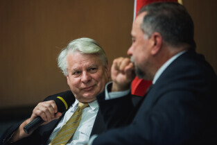 Gdańsk, ECS. Niepodległość Ukrainy - debata. Nz. (prawej) Łew Zacharczyszyn, Konsul Ukrainy w Gdańsku, Wicemarszałek Senatu Bogdan Borusewicz