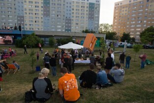 Gdańsk Zaspa. Noc Murali z udziałem komisji selekcyjnej ESK 2016 i Prezydenta Gdańska Pawła Adamowicza.