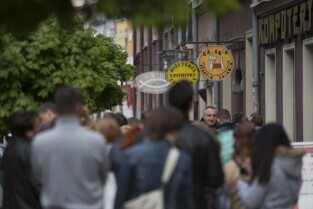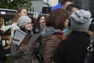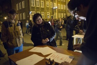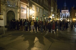Gdańsk. Europejska Noc Muzeów. Zwiedzający oglądają program
