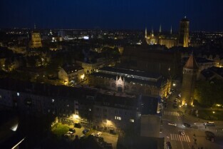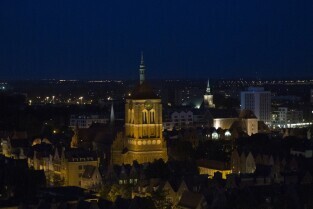 Gdańsk. Widok z wieży Kościoła św. Karzyny, który możabyło obejrzeć podczas Europejskiej Nocy Muzeów. Nz. ul. Rajska
