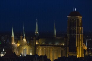 Gdańsk. Widok z wieży Kościoła św. Karzyny, który możabyło obejrzeć podczas Europejskiej Nocy Muzeów. Nz. Bazylika Mariacka