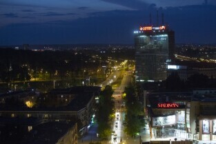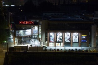 Gdańsk. Widok z wieży Kościoła św. Karzyny, który możabyło obejrzeć podczas Europejskiej Nocy Muzeów. Nz. Centrum Handlowe Madison