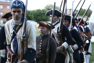 Noc Muzeów 2018 w Gdańsku. Nz. Centrum Hewelianum-pokaz grupy rekonstrukcyjnej Garnizon Gdańsk.