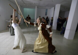 Noc Muzeów 2018 w Gdańsku. Nz. Muzeum Narodowe. Wszyscy jesteśmy Marysiami– pokaz kultowego dla muzealników filmu Poszukiwany, Poszukiwana, w reżyserii Stanisława Barei, z Wojciechem Pokorą w roli głównej– gra fabularna inspirowana filmem.
