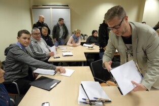 W nocy z piątku na sobotę odbyło się Liczenie Bezdomnych w Gdańsku. Nz Wiceprezydenci Gdańska Piotr Grzelak i Piotr Kowalczuk podczas odprawy.