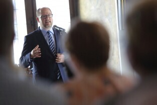 Gdańsk Ratusz Głównego Miasta. Nominacje i podziękowania z rąk Prezydenta Gdańska Pawła Adamowicza otrzymali dyrektorzy gdańskich placówek oświatowych.
