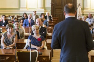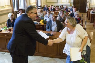 Gdańsk, Nowy Ratusz. Prezydent Gdańska Paweł Adamowicz wręcza powierzenia na stanowiska dyrektorów gdańskich placówek oświatowych oraz nagrody nauczycielom przechodzącym na emeryturę