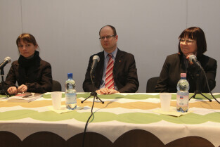 Nowa dyrektor Galerii Miejskiej w Gdańsku - konferencja prasowa. Nz. od lewej: Iwona Bigos (Dyrektor Galerii), Paweł Adamowicz (Prezydent Gdańska), Anna Czekanowicz (Dyrektor Biura ds. Kultury)