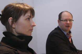 Nowa dyrektor Galerii Miejskiej w Gdańsku - konferencja prasowa. Nz. od lewej: Iwona Bigos (Dyrektor Galerii), Paweł Adamowicz (Prezydent Gdańska)
