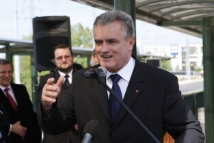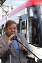 Gdańsk Południe. Oficjalne otwarcie lini tramwajowej Chełm Witosa - Łostowice Świętokrzyska. Nz. Przewodniczący Rady Miasta Gdańska Bogdan Oleszek.