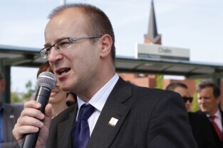 Gdańsk Południe. Oficjalne otwarcie lini tramwajowej Chełm Witosa - Łostowice Świętokrzyska. Nz. Zastępca Prezydenta Gdańska Maciej Lisicki.