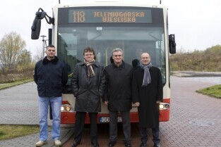 Gdańsk, Ujeścisko. Oddanie do użytku nowej pętli autobusowej. Od soboty, 10 listopada, autobusy linii 118 będą jeździły do pętli przy ul. Piotrkowskiej znajdującej się w głębi osiedla. Nz. (od prawej) zastępca Prezydenta Gdańska Maciej Lisicki, Przewodniczący Rady Miasta Gdańska Bogdan Oleszek, dyrektor ZTM Jerzy Dobaczewski i zastępca dyrektora ZTM Sebastian Zomkowski.