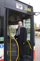 Gdańsk, Ujeścisko. Oddanie do użytku nowej pętli autobusowej. Od soboty, 10 listopada, autobusy linii 118 będą jeździły do pętli przy ul. Piotrkowskiej znajdującej się w głębi osiedla. Nz. zastępca Prezydenta Gdańska Maciej Lisicki.