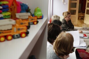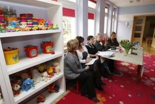 Konferencja prasowa z udziałem Z-cy Prezydenta Gdańska Ewy Kamińskiej, poświęcona zmianom form opieki nad dziećmi do lat 3 w oparciu o nową ustawę. Gdańsk, Żłobek nr 7 "Berek" przy ul. Pocztowej 1